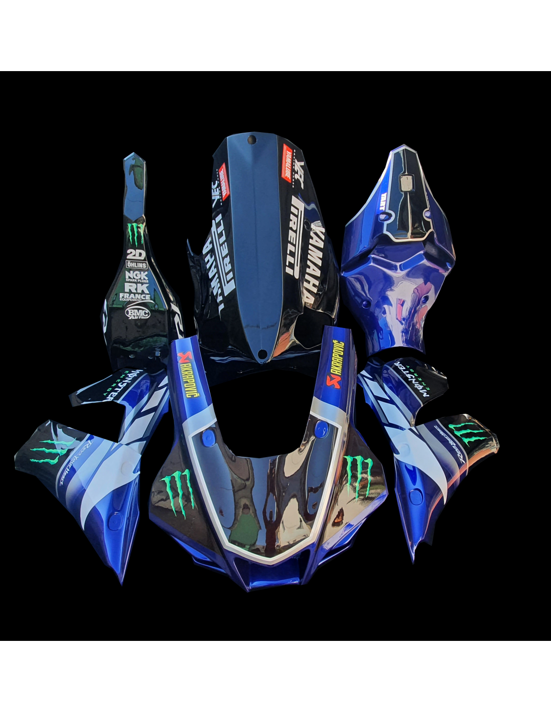 Elite: we use high quality paints with shades similar to the original. The stickers are printed using 8-color printers which give them impeccable shine and shades. The whole graphic is under three layers of clear coat to keep the colors of the bodywork bright over time. We also paint the whole fairing kit inside.