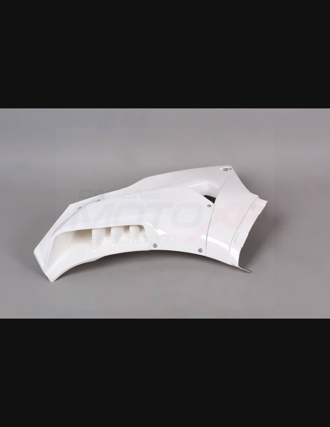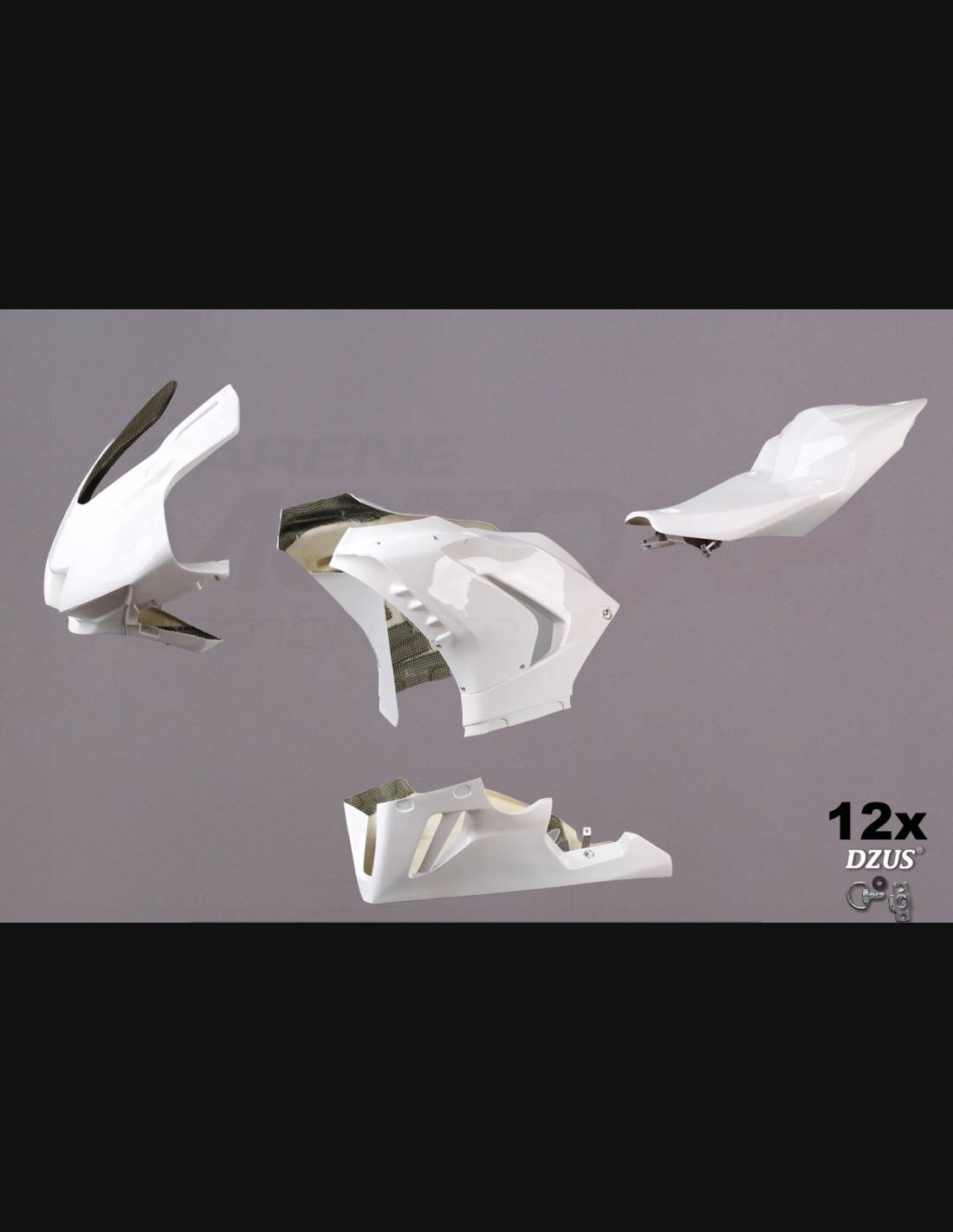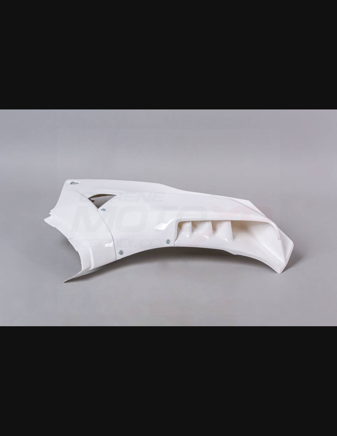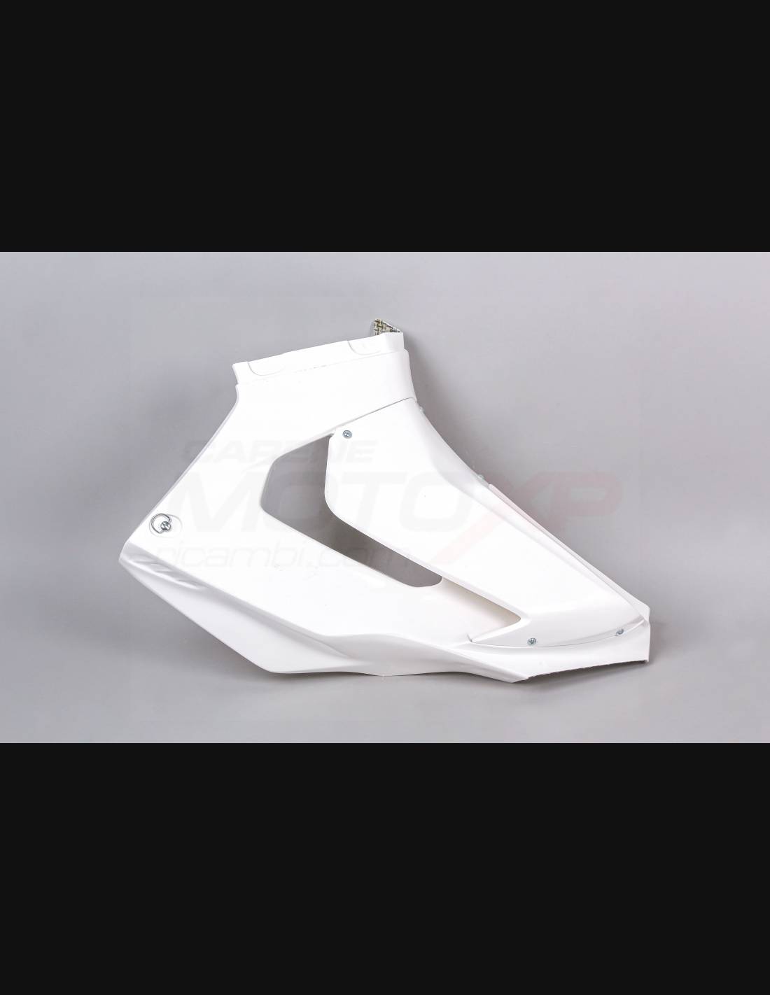 Our race fairings are made of fiberglass, they are reinforced in carbon and Kevlar in the stress areas. We include a closed lower fairing that allows to catch the liquids, so our fairings are approved for the various championships and for the amateur usage on the tracks. We mark where you should drill the holes, so you can make the hole according to the dimension of the screw you are going to use.