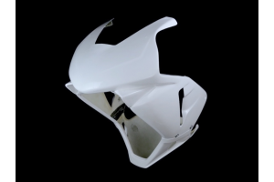 Our race fairings are made of fiberglass, they are reinforced in carbon and Kevlar in the stress areas. We include a closed lower fairing that allows to catch the liquids, so our fairings are approved for the various championships and for the amateur usage on the tracks. We mark where you should drill the holes, so you can make the hole according to the dimension of the screw you are going to use.