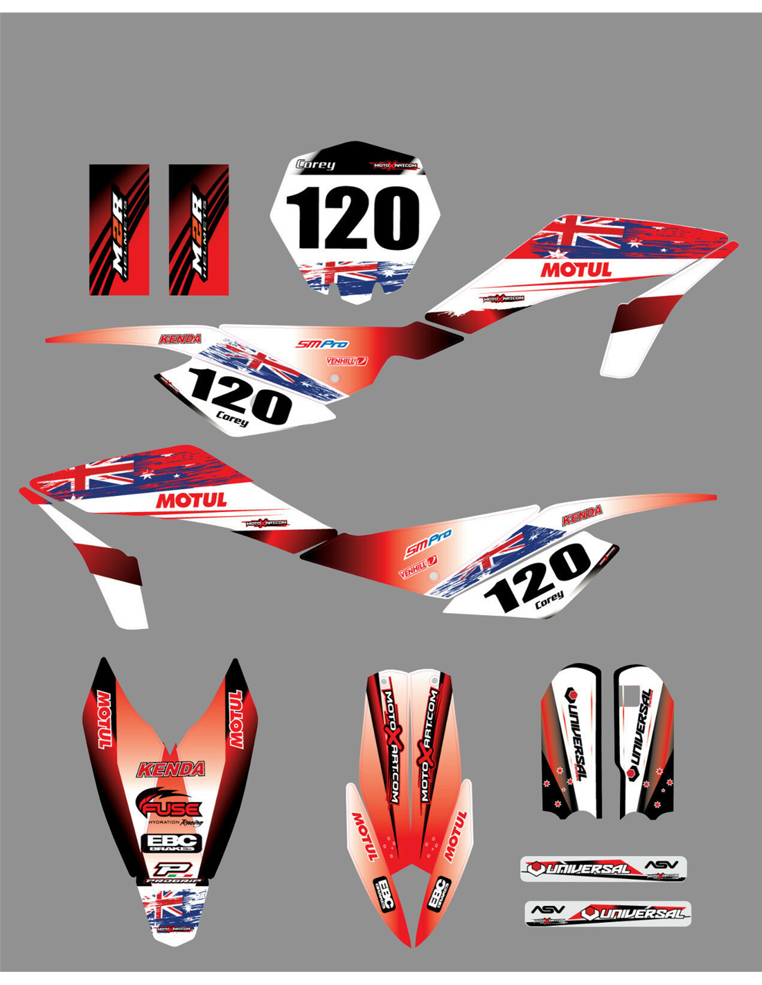 The stickers we produce are made of first quality crystal materials that will be adapted easily and perfectly on the plastics of the motorcycle of the customer. The resistance of the material allows our graphic to stay perfectly sticked also during the most difficult usage conditions of the motorcycle. The installation, thanks to the channels for air discharge lets you install the stickers smoothly and without bubbles. We use last generation machineries for the printing, so we can print bright colors and high qualities shades. We include a protective layer on the stickers, so they will be always bright during the years and are protected against water and dirt. It is possible to customize the stickers as you prefer. You can add, remove or change technician sponsors, add a custom race number or your own name. You can indicate all changes in the field “Product customization” on the website during the purchase. We are not limited only to the graphics on our website, you can send us by email or WhatsApp a picture of a design we don’t have, so we can make you a quotation and then make it. Through the purchase, you accept the sales conditions.