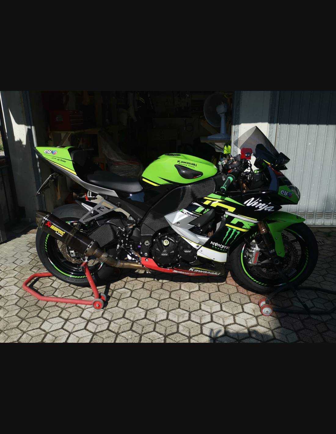 Elite: utilizamos los colores originales de la moto (Kawasaki verde); los adhesivos están impresos con varios tonos gracias a nuestro plotter de corte y de impresión de 8 colores con tintas ECO-SOLMAX2 con una alta calidad y resistencia a la luz solar hasta 7 años garantizados por la empresa APA Italia que nos da los materiales necesarios para el corte y la impresión. Los adhesivos están cubiertos por tres capas de transparente y eso los hace brillar durante 7 años. Además todo el carenado está pintado en el interior.