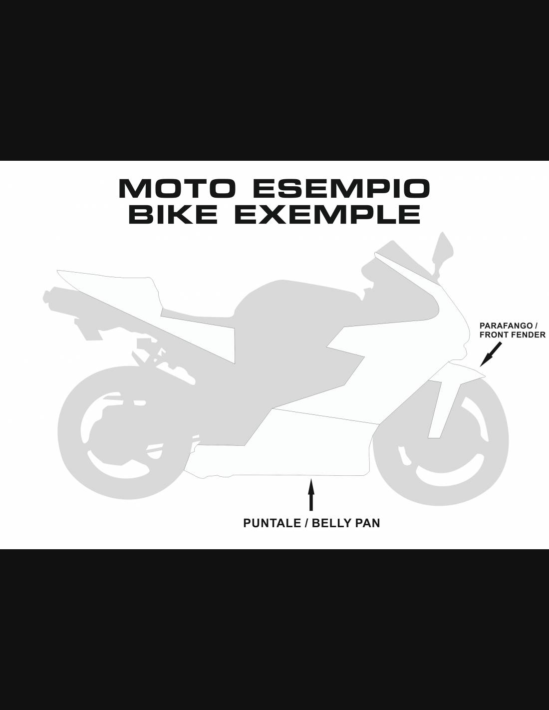 Nuestros carenados racing son en fibra de vidrio, tienen refuerzos en carbono y kevlar en las areas de major stress. Se incluye una quilla cerrada, entonces nuestros carenados son homologados para las competiciones profesionales y amatoriales en las pistas. Indicamos donde tiene que hacer los agujeros, asì puede hacer el agujero de la dimension correcta de su tornillo. El carenado es pintado podemos personalizar como quiere. Puede escribir todas las modificaciones cuando hace el pedido. Mediante la compra,se aceptan las condiciones de venta.