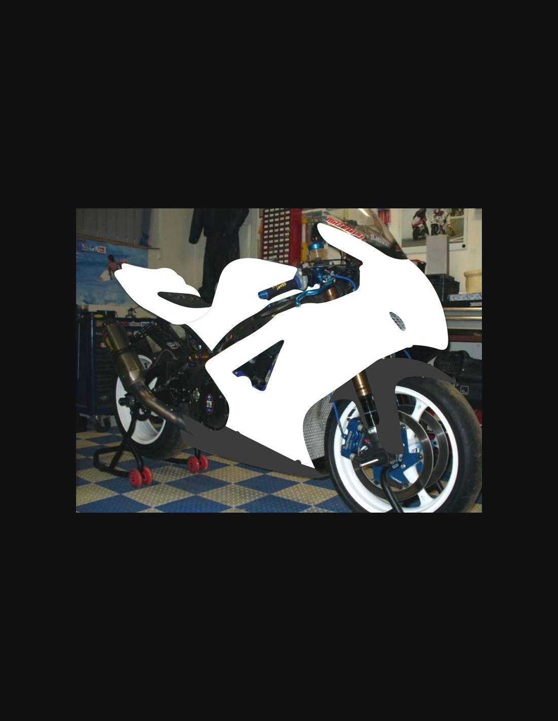 Le kit carénages comprend: tête de fourche, flanc gauche et droit, bas de carénage fermé et homologué pour la piste, coque arrière complet (le cache réservoir n’est pas inclus).
