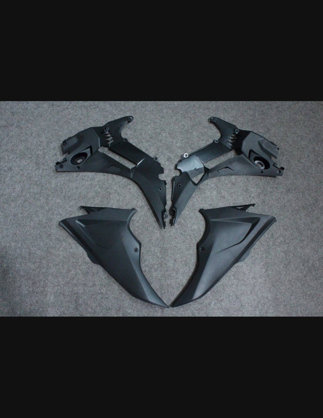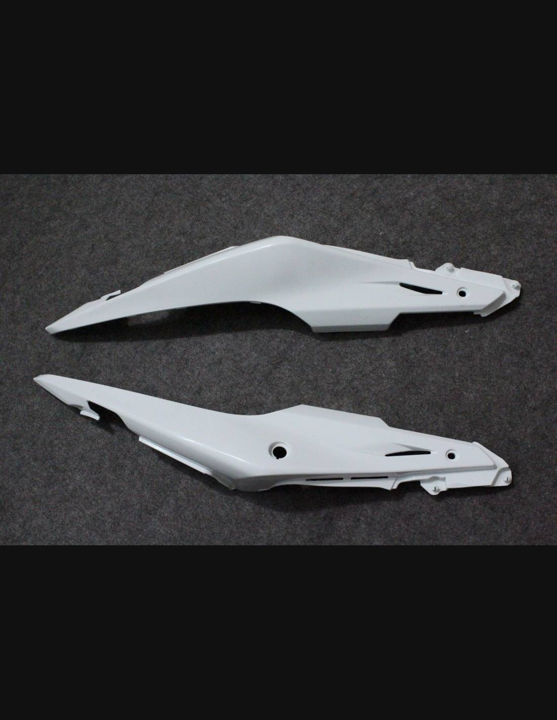Our street fairings are made of ABS (plastic) and they are compatible with the stock fairings. We supply them already pre-drilled and there are all internal mounting points, so we can guarantee an easy installation and without modifications on the motorcycle of the customer. Also, they are compatible with the screws and other OEM accessories of the motorbike. Price includes the heat shield protection to stick on the lower fairings too.