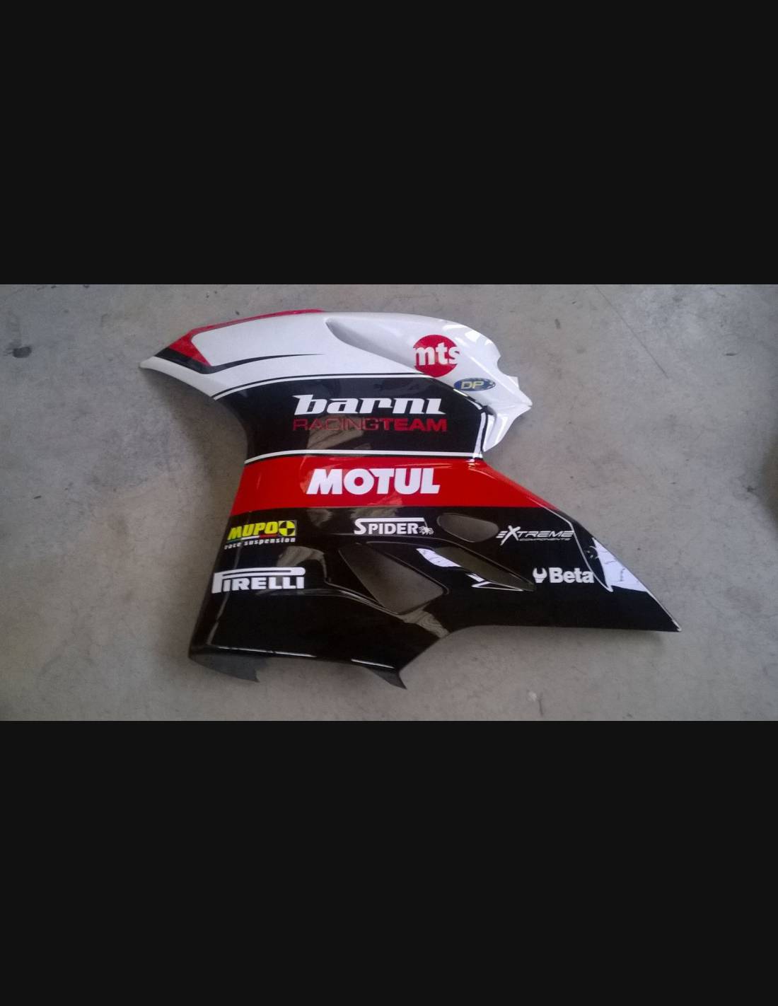 Our race fairings are made of fiberglass, they are reinforced in carbon and Kevlar in the stress areas. We include a closed lower fairing that allows to catch the liquids, so our fairings are approved for the various championships and for the amateur usage on the tracks. We mark where you should drill the holes, so you can make the hole according to the dimension of the screw you are going to use.