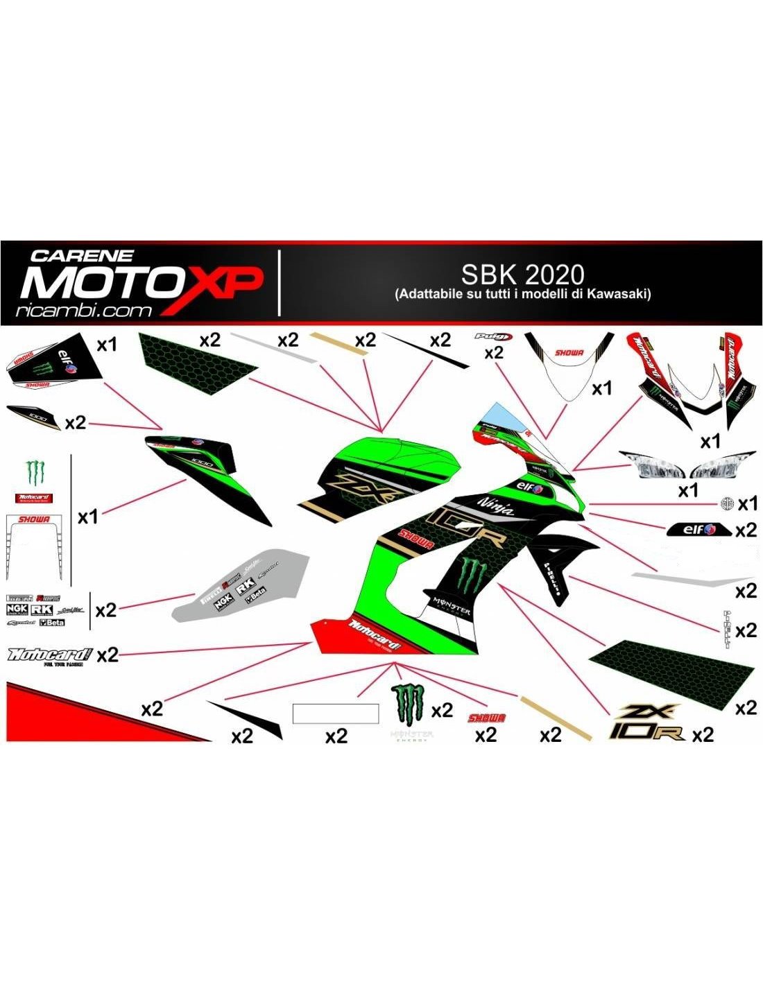Kit adesivi compatibile con Kawasaki Zx10R 2011 - 2015 - MXPKAD12311