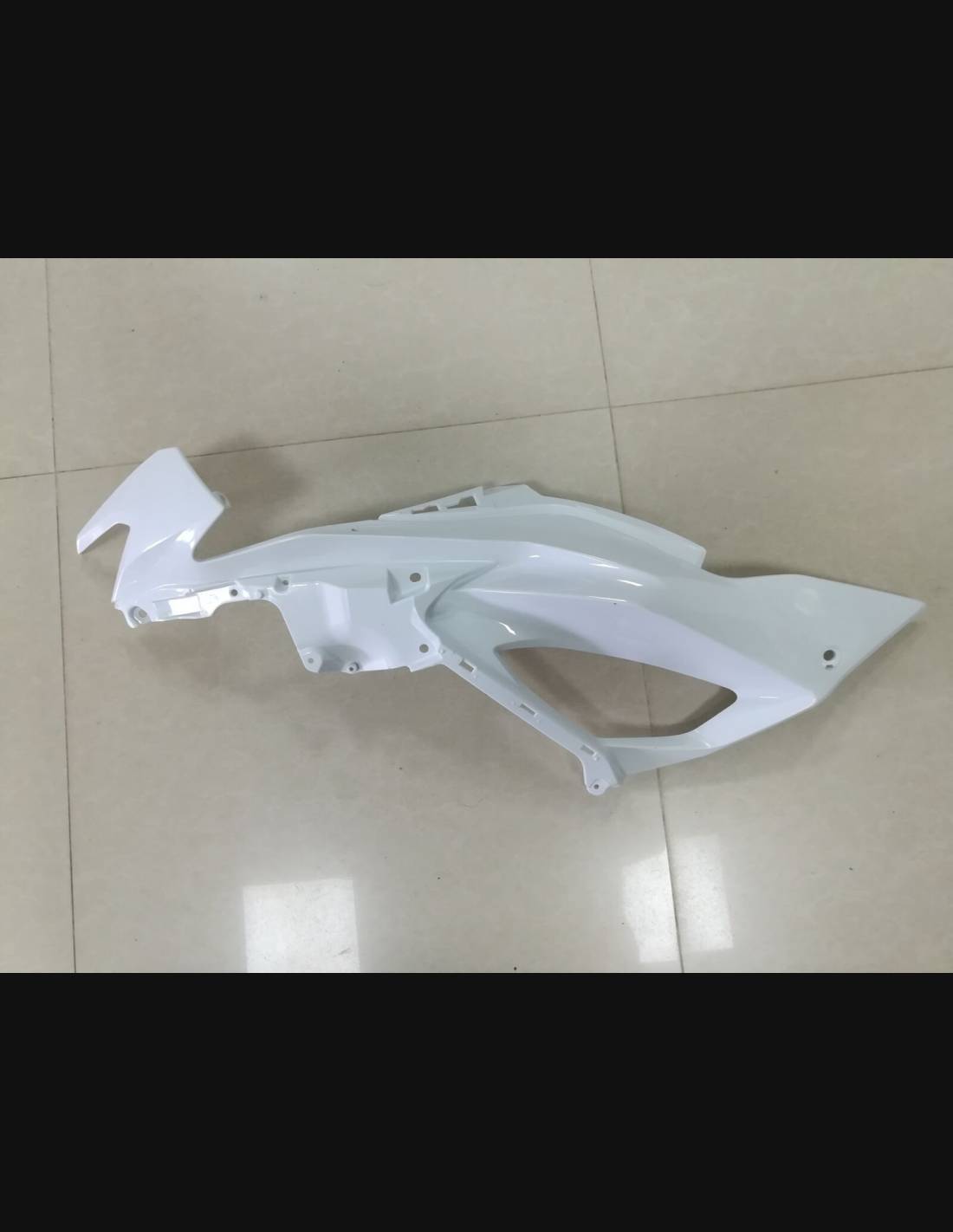 The fairing kit includes: front upper part, side fairings right and left, lower fairing right and left, back seat, front fender and all eventual internal black plastics.